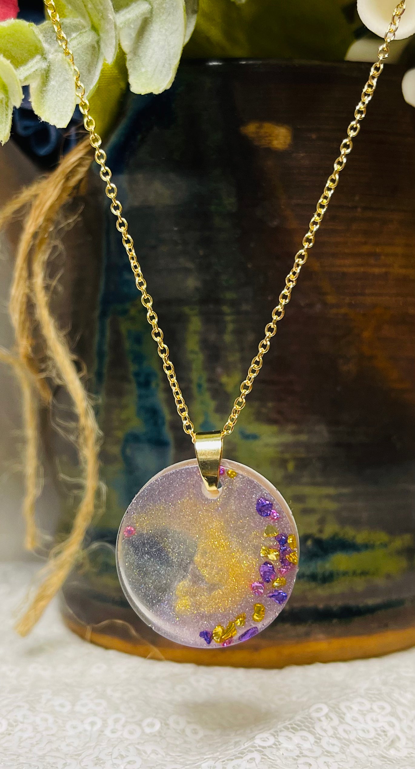 Pendant Necklace: Purple & Gold Shimmer